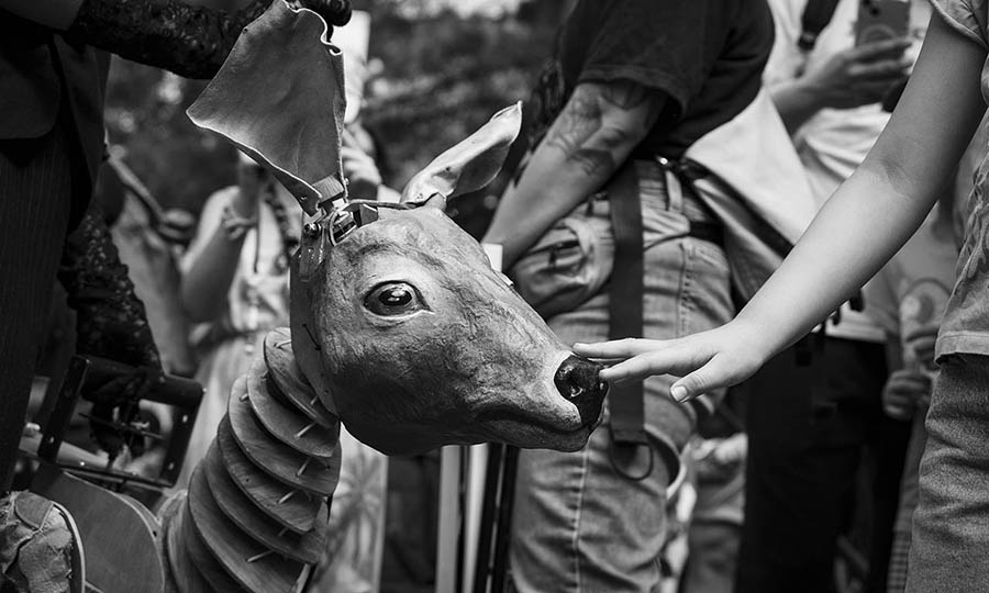 Con una duración aproximada de 30 minutos, la intervención se desarrollará en tres momentos: el preludio, en el que los animales se encuentran con la gente; la representación en círculo, que define el espacio escénico, y el cierre con una instalación sonora.